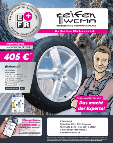 …mit dem Rundum Service von REIFEN WEMA. Vertrauen Sie beim Kauf neuer Reifen dem Fachmann. Als geschulte Spezialisten wissen wir genau, welches Produkt zu Ihnen passt. Wir finden den richtigen Reifen für Ihre Sicherheit und ein Maximum an Fahrspaß zum besten Preis. Schließlich bilden Reifen die einzige Verbindung zur Straße und ein optimal abgestimmtes Produkt bietet erhöhte Laufleistung, geringeren Rollwiderstand und kürzere Bremswege.
